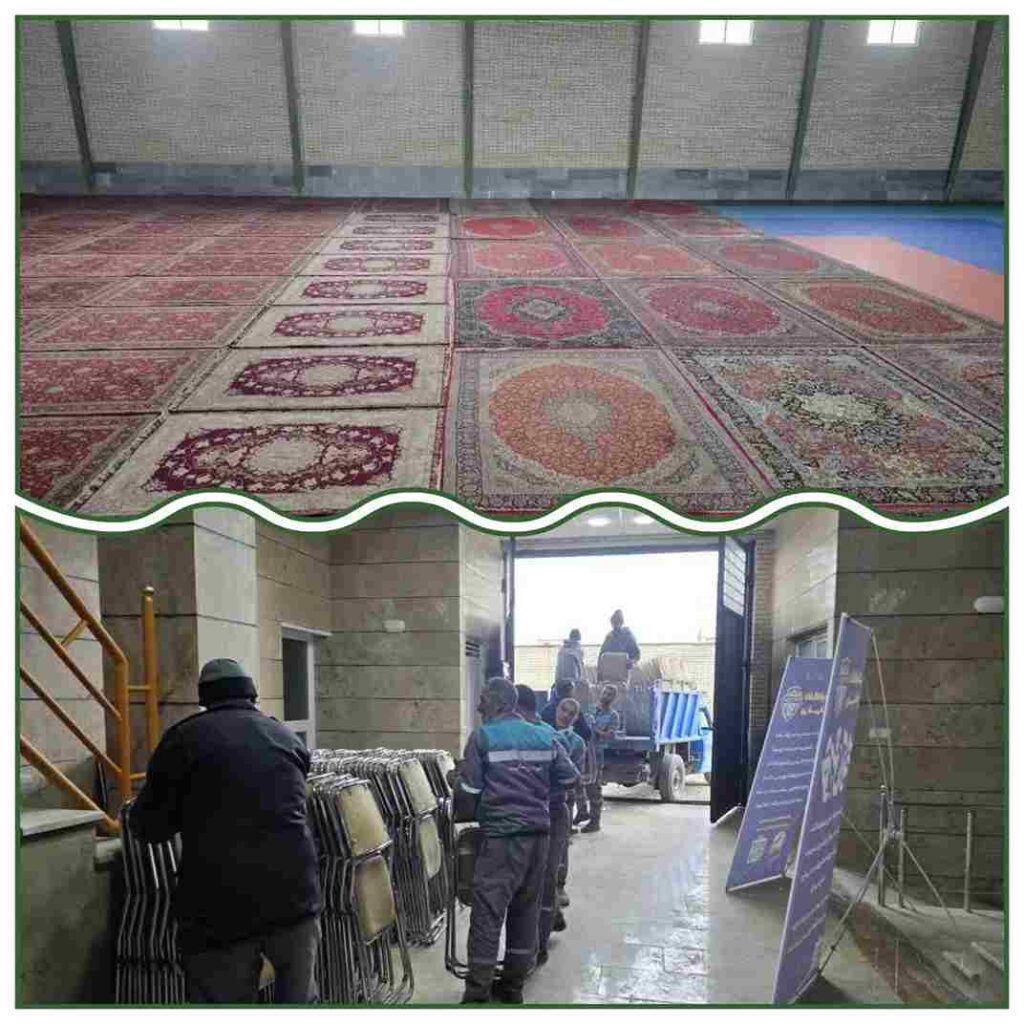 تلاش پرسنل شهرداری برای آماده سازی سالن ورزشی اتحاد جهت برگزاری مراسم جشن افتتاحیه 🏟️✨